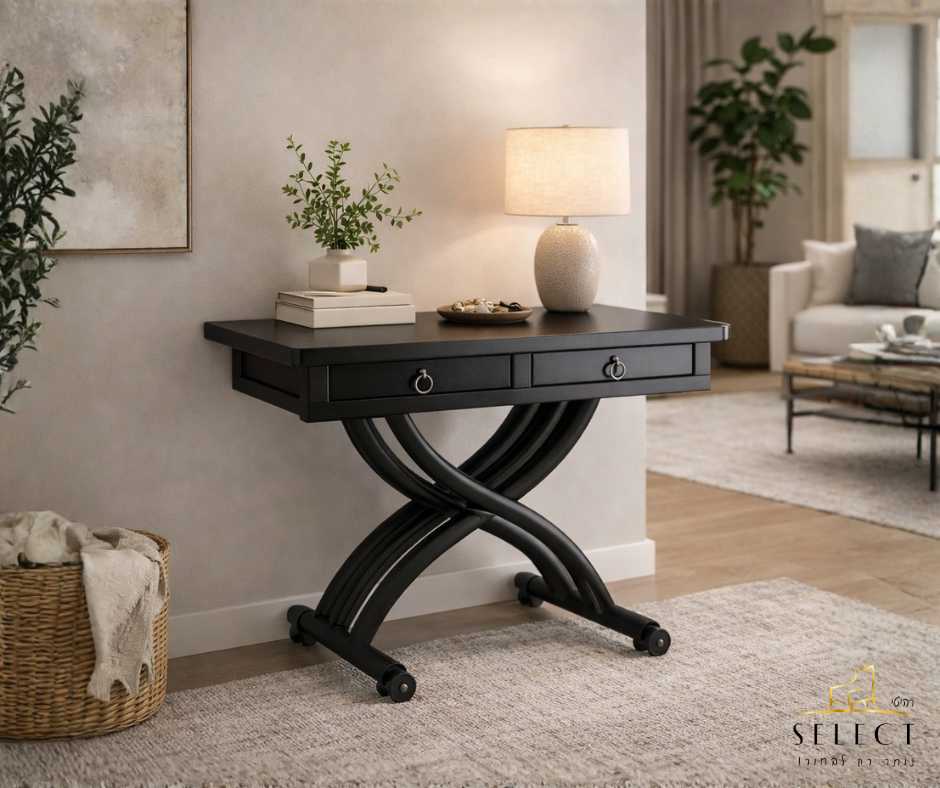 שולחן טרנספורמר קרמי שחור עם מגירות