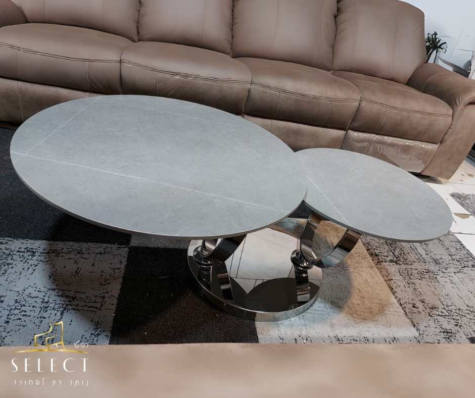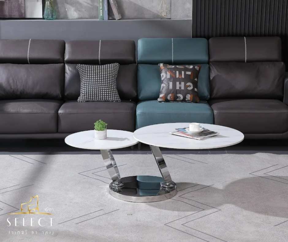 שולחן הסלון דגם 8857 מבית רהיטי SELECT מציע שילוב מושלם של עיצוב מודרני, פונקציונליות וסטייל. הוא כולל פלטות אבן לבן מבריק , הנתמכות על רגלי מתכת מעוגלות בגוון ניקל – מראה מרשים שמתאים לכל חלל מודרני.