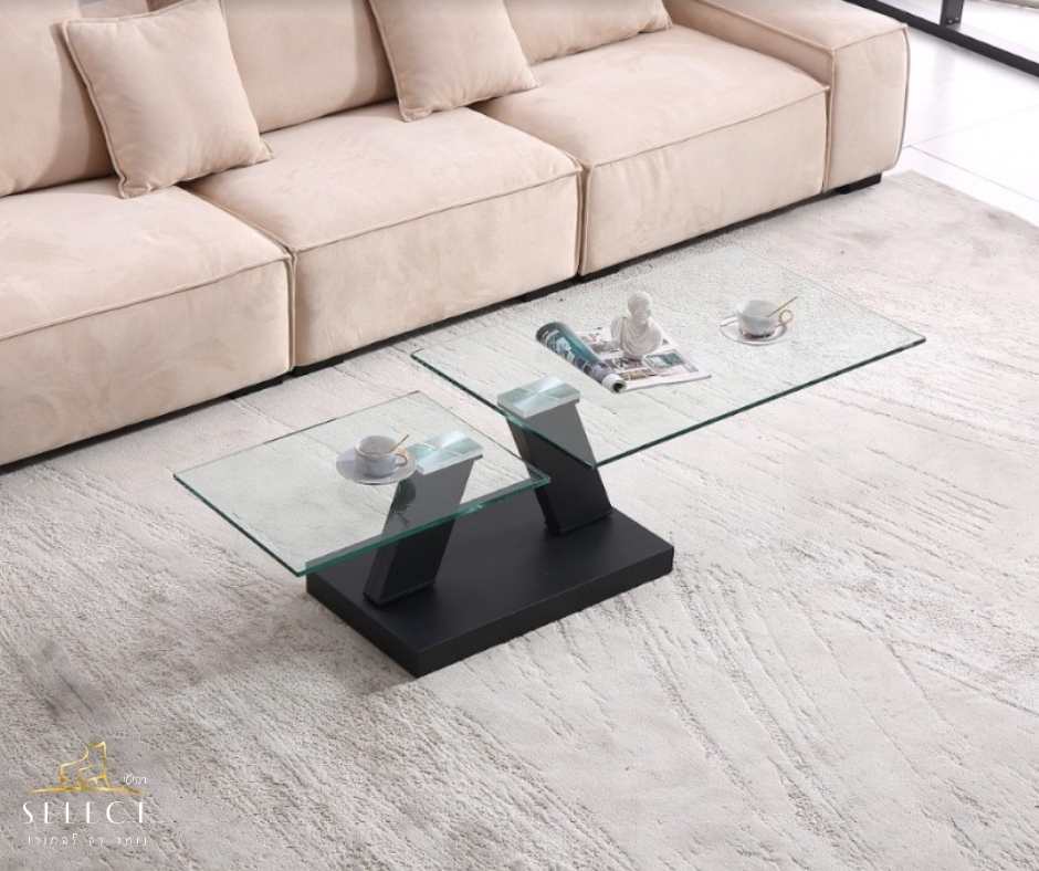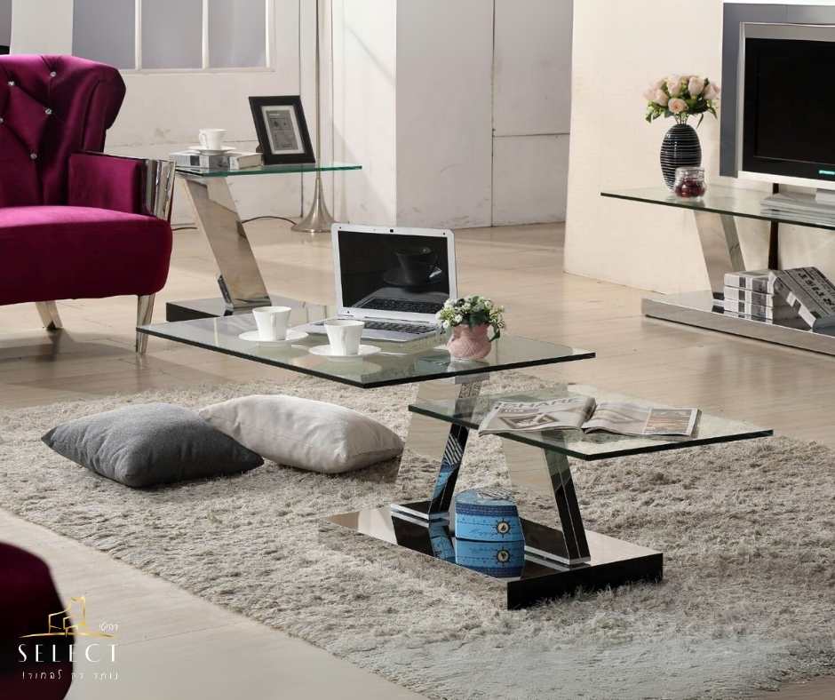 שולחן הסלון דגם 917 מבית רהיטי SELECT מציע שילוב מושלם של עיצוב מודרני, פונקציונליות וסטייל. הוא כולל פלטות זכוכית מעושנת , הנתמכות על רגלי מתכת בגוון ניקל – מראה מרשים שמתאים לכל חלל מודרני.